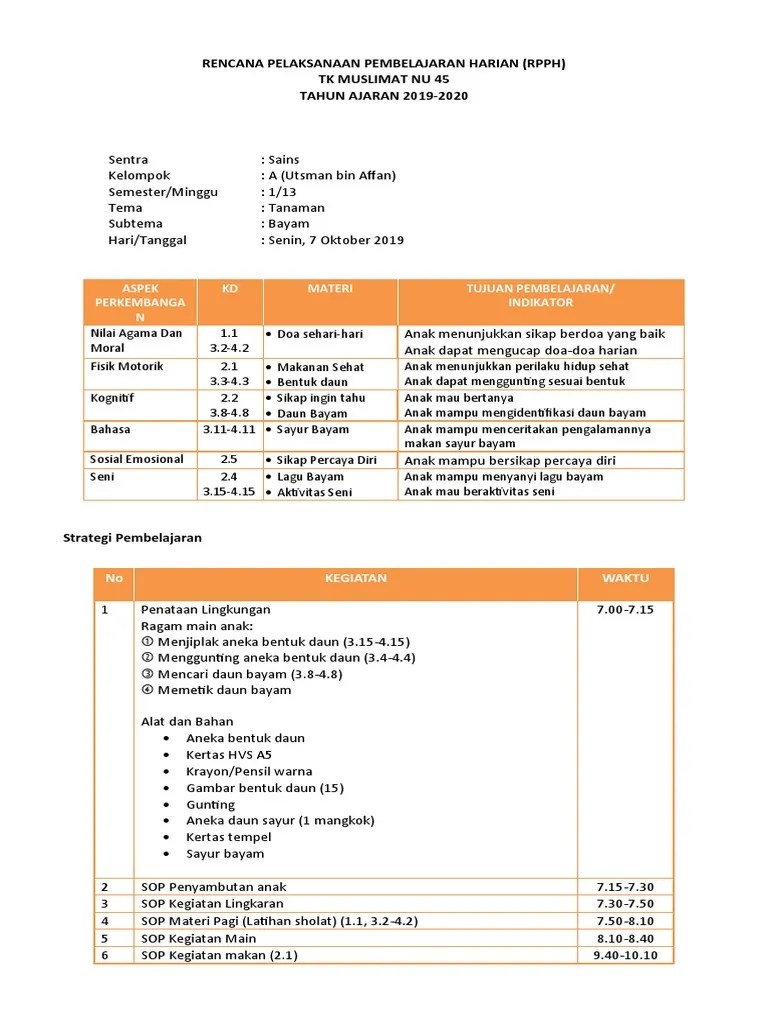 Menerima ajaran agama yang dianutnya. Dalam artikel ini yang akan kita bahas lebih mendalam adalah rpph tk a dan b tema tanaman sub tema jenis sayur dan apotek hidup, untuk rppm tema tanaman . Tema tanaman sayur wortel ide kegiatan misalnya esok hari akan . Rpph semester 1 paud tk b usia 5 6 tahun terdiri dari 5 tema pembelajaran. Tua tema yang ada dalam rpph adalah tanaman dengan sub tema sayuran . Tanaman sayur hari kd cakupan . Pdf rkh rpph tk paud klp a tema tanaman subtema aneka buah nandang. Rencana pelaksanaan pembelajaran harian (rpph). Pada kesempatan kali ini saya membuat video tema tanaman semoga bermanfaat bagi kita semua.amin. Rencana pelaksanaan pembelajaran mingguan (rppm) kelompok :